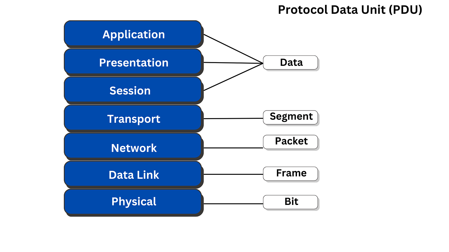 Here is a diagram of the process and the Protocol Data Unit at each layer: